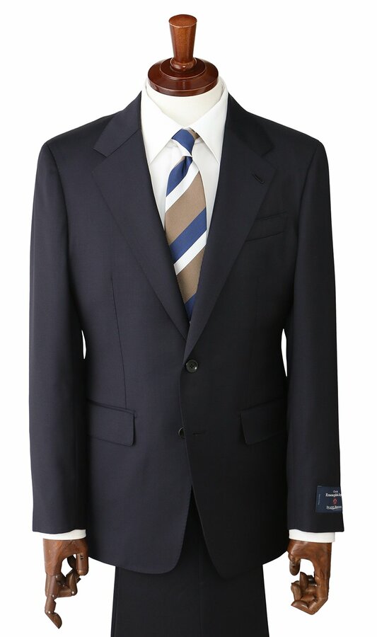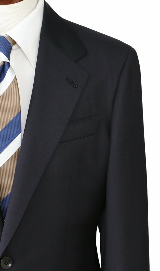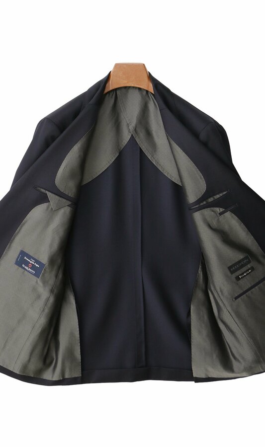 商品は、イタリアの伝統的な2大スタイルを掛け合わせ、日本人の体型に合わせて再構築した当社独自の新モデルです。ナポリスタイルの特徴である柔らかく軽やかな着心地をベースに、ミラノスタイルならではのフォーマル感のある立体的な胸元と、体に沿うシャープなシルエットを融合。さらに衿の切り替え位置や、ウエストの高さにもこだわり、スタイリッシュさと品格を両立しました。表地には、イタリアの最高峰生地ブランド『エルメネジルド・ゼニア』の「ISLAND BREEZE(アイランドブリーズ)」を採用。タテ糸のウールにシルクを巻き付けることで、ゼニアらしい滑らかで上質な光沢感はそのままに、ハリコシのある優れた強度を実現。湿気に強く軽さと清涼感のある生地のため、日本の高温多湿な気候でも快適に着用できます。また、前身頃すべてに毛芯を縫い込んだ総毛芯仕立で、立体的で重厚感を演出するほか「一枚衿の衿付け」や「袖付け」といった重要な工程は熟練職人のハンドメイドで行うなど本格的な仕上がりとなっています。