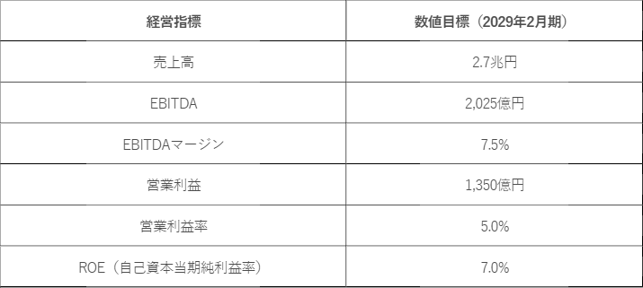 本計画の最終年度である2029年2月期において、以下の数値目標の達成を目指します。