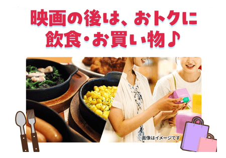 ・当日鑑賞した映画のチケット(半券)または電子チケット 提示で、期間限定の専門店のおトクな特典をご用意しています。