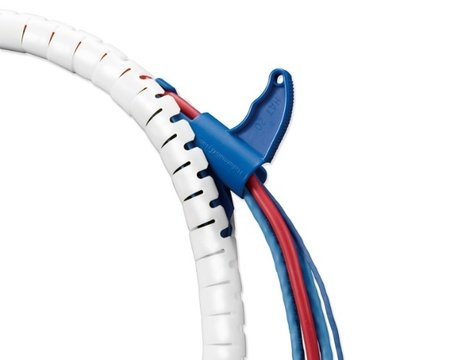 ヘララップは、簡単に、素早く取り付けが可能なケーブル保護用チューブです。専用の取り付け工具を付属しており、スパイラルチューブのように電線に巻き付ける必要がありません。商業施設や店舗内装で多用される白色の壁面・天井に自然に溶け込む非透明な白色を採用しており、配線が透けて見えにくく、美観を損ないません。また、清潔感が求められる箇所での使用にも適しています。