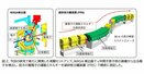 本実験では、前方に射出された重陽子のエネルギーを測るための破砕核分離装置(FRS)と、η′中間子原子核が崩壊して出てくる陽子を検出するためのWASA検出器を組み合わせた新しい実験セットアップ(図2・図3)を構築し、背景事象を約400分の1にまで削減してη′中間子原子核を選択的に捉えることに成功しました。図4は、本実験で得られたスペクトルで、横軸は炭素11原子核の励起エネルギー、縦軸は反応確率の度合いを表す反応断面積です。スペクトルに現れている2つの構造は、η′中間子が原子核に異なる軌道で束縛した状態の存在を示唆しています。このことは同時に、原子核密度においてη′中間子の質量が減少している可能性を示しています。