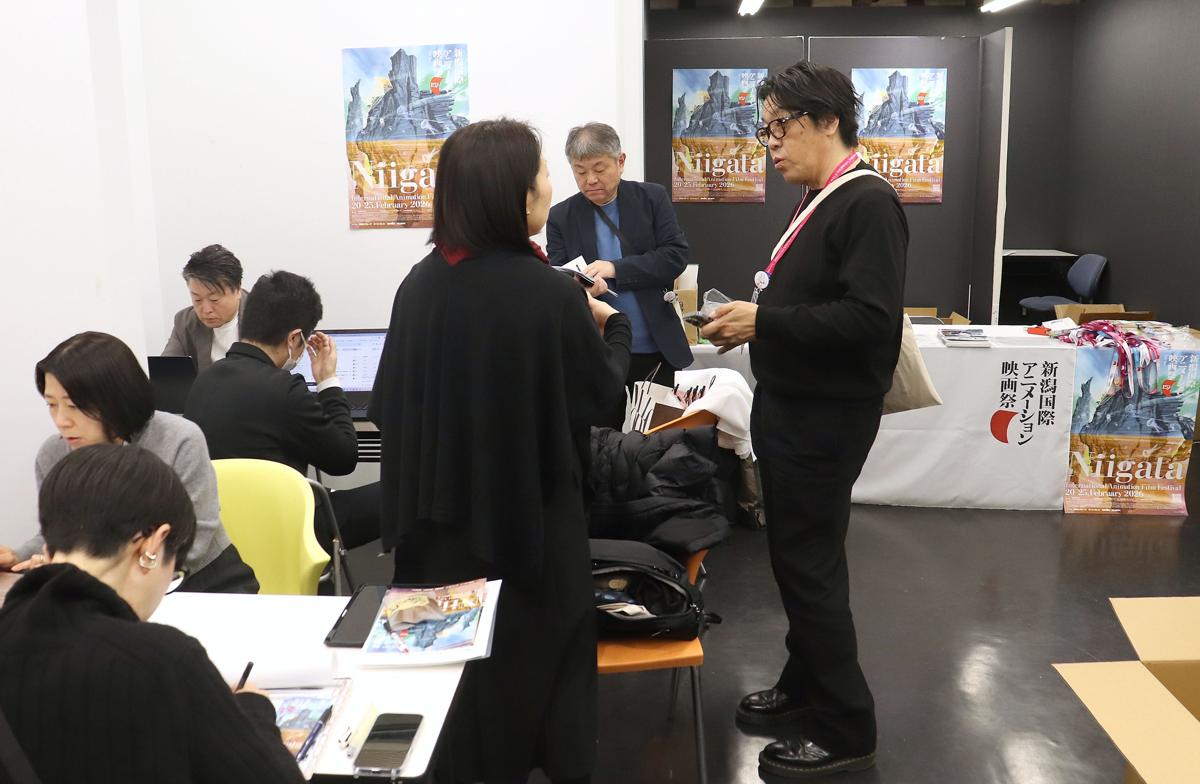 「いろいろあったけど、たくさんの人が来てくれてよかった。ありがとね」。第4回新潟国際アニメーション映画祭が閉幕した2月25日夜、新潟市中央区の打ち上げ会場で、理事梨本諦嗚(たお)(58)は関係者と抱き合った。