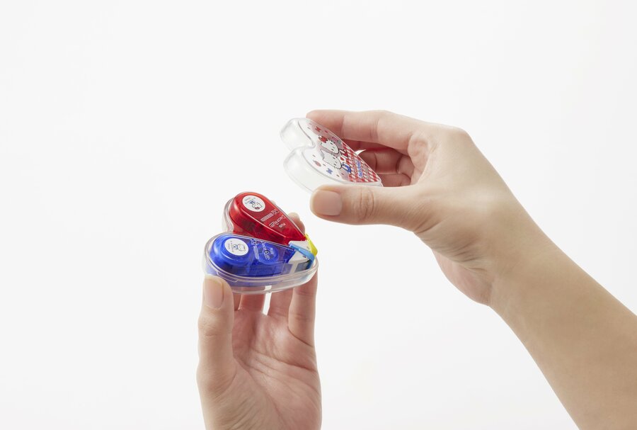 独自機能として、指1本で開閉できる「ワンタッチキャップ」や、直進性に優れ、なめらかな使い心地を実現する「ミニローラー」、テープ浮きを防ぎ密着性を高める「ピタッとヘッド」、左利き対応など、抜群の使いやすさを実現しています。