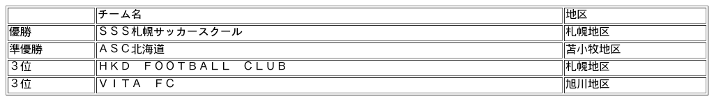 北海道大会の優勝はSSS札幌サッカースクール(札幌地区)で、5月3日(日・祝)~5日(火・祝)に日産スタジアムで開催される決勝大会へ出場します。