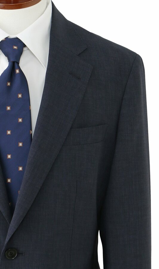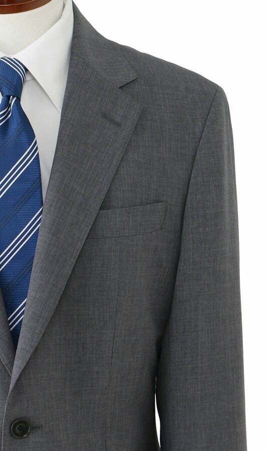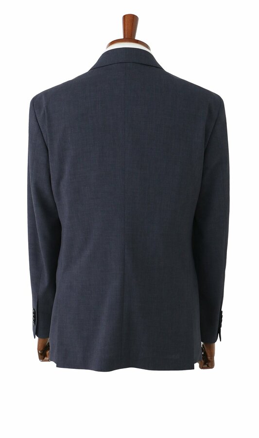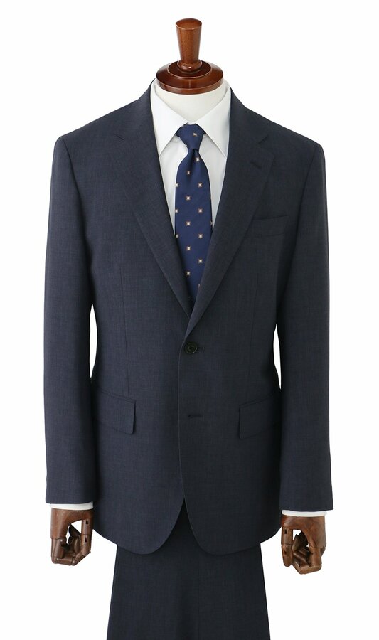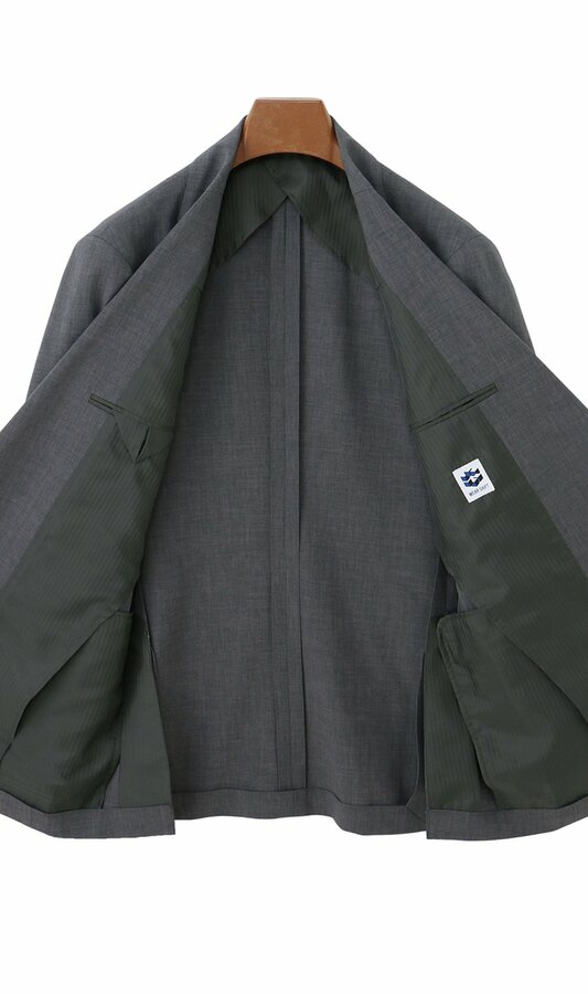 表地の素材は、リサイクルポリエステル100%となっており、リサイクリングボックスで回収された衣類(裏地など)や製造工程で発生する裁断布などが2%、その他の回収衣料が18%、PETリサイクル素材が80%となっています。回収された衣類や裁断布は、高度な紡績・織布技術によって、高品質なスーツ用のポリエステルへと再生しました。また、胴裏地にはリサイクルペットボトル原料の「ECO BLUE」を、ボタンには「バイオマス原料」を採用。さらに、下げ札(タグ)などにも、自社の回収衣類を10%配合した古紙を使用するなど、これまで以上に環境に配慮した循環型のスーツとなっています。