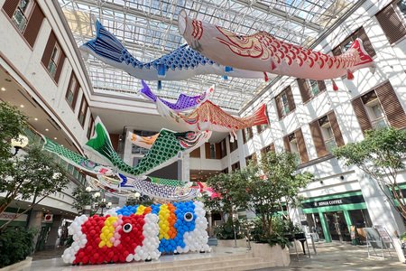 北モールステージでは、バルーンによる鯉のぼりトンネルを設置し、体験型フォトスポットとして展開しています。トンネル状に連なる鯉のぼりは迫力ある空間を生み出し、くぐって遊んだり、家族で写真撮影を楽しめる場として来場者に好評です。屋内で完結するため天候に左右されず、安心して楽しめる点も特徴であり、来場者からは「迫力がある」「子どもが楽しめる」「天候を気にせず過ごせる」といった声が寄せられています。