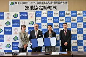 本協定は、世界的な国際観光地としてのポテンシャルを持つ富士河口湖町と、世界70カ所以上の海外ネットワークを持つジェトロが強固に連携し、町内企業の海外展開支援やインバウンド対応の強化、外国人材のマッチング、外資系企業の誘致などを効果的に進めることを目的としています。