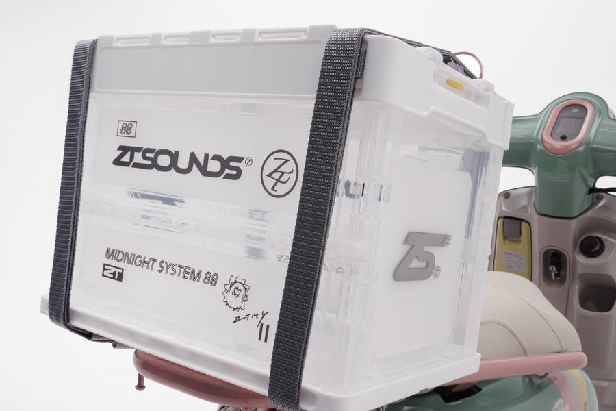 また、フロントフェンダーには、ZUTOMAYOキャラクター「しょうがストリングス」のエンブレムを配置し、リアに搭載した「ZUTOMAYO SOUNDS」デザインのボックスには、音楽ガジェットを積載したくなるような生活感とデザインを繋いでいます。さらにヘッドランプのロゴをはじめ、タグのステッカー、各種レバー類からホイールに至るまで、細部までこだわっています。