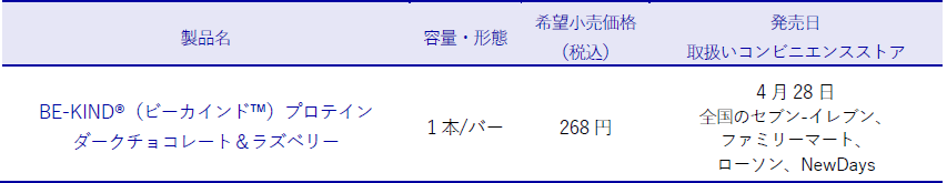 )より、植物由来のプロテインをおいしく摂取できるプロテインシリーズの新製品「BE-KIND(R)(ビーカインド(TM))プロテイン ダークチョコレート&ラズベリー」を、4月28日より全国のコンビニエンスストアで新発売します。
