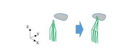 図4.モデルスライスデータを参照し、サポート先端を自動で折り曲げて最適化