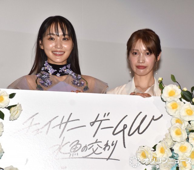 俳優の菅井友香(30)、中村ゆりか(29)、太田勇監督が15日、都内でおこなわれた映画『チェイサーゲームW 水魚の交わり』(5月15日公開)の完成披露イベントに登壇した。