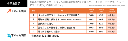 小中×男女別〈ふだんしていること〉2023年→2025年の時系列変化