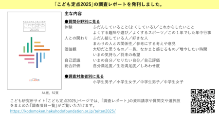 博報堂教育財団 こども研究所 が 小中学生*2,400人に調査した「こども定点2025」を発表