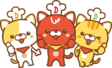 デニーズの公式キャラクターとして店内や SNS で活動する「ぐぅ(赤)」「るぅ(黄)」「めぇ(白)」の 3 人組です。