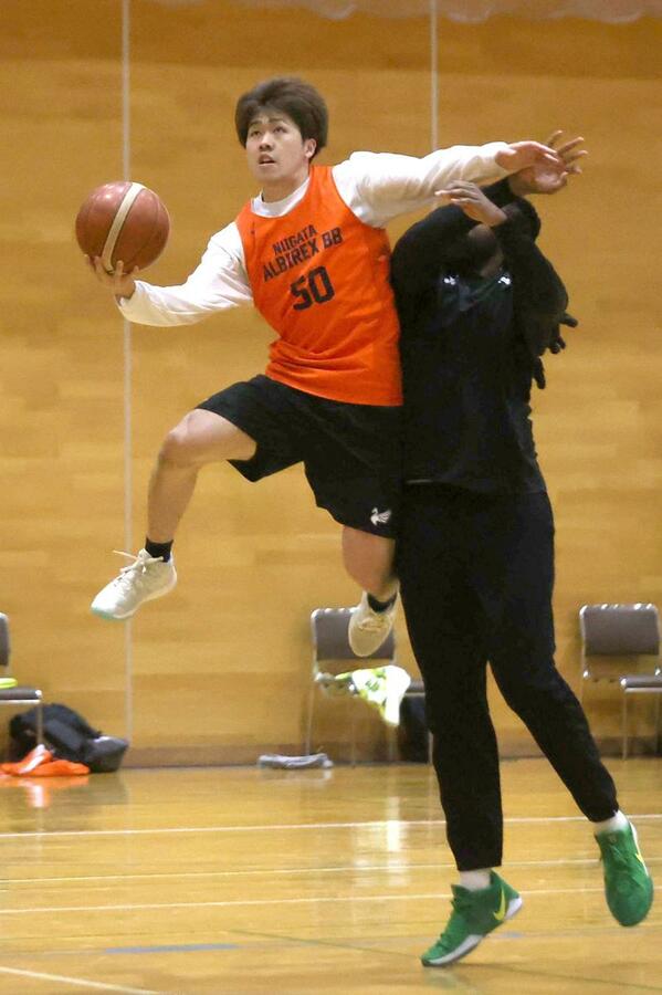 B3で5位の新潟アルビレックスBBはレギュラーシーズン最終節となる第29節の18、19日、埼玉県の浦和駒場体育館で3位の埼玉と戦う。前節は三重に2連勝し、31勝19敗。鵜澤潤監督は「目の前の試合に集中し、一戦必勝で臨む」と語る。