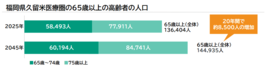 日本医師会によると、福岡県久留米市とその近隣を含む久留米医療圏(※2)では、今後20年間で65歳以上の高齢者が約8,500人増加し、2045年には約14万5,000人となると推計されています(※3) 。 これに伴い介護ニーズも深刻化し、2050年の介護需要予測指数は2020年比で26%増となる見込みです(※3) 。