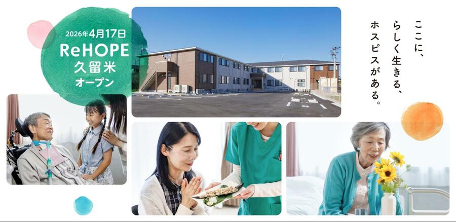 がん末期や神経難病の方のためのホスピス事業を運営する株式会社シーユーシー・ホスピス(代表取締役 藪 康人、以下 CUCホスピス)は、2026年4月17日(金)に福岡県久留米市に「ReHOPE 久留米」を開設いたしました。
