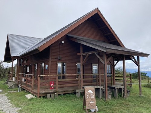 キャンプサイトの受付や避難小屋にもなっている管理棟「でいだらボッチ館」。AEDも設置。