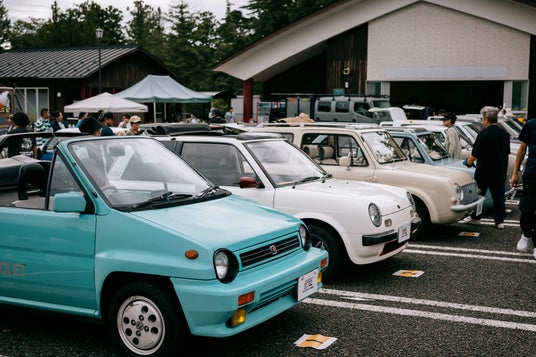 カワイイ車が並んで走る、この日だけの弥彦の景色をお楽しみください。