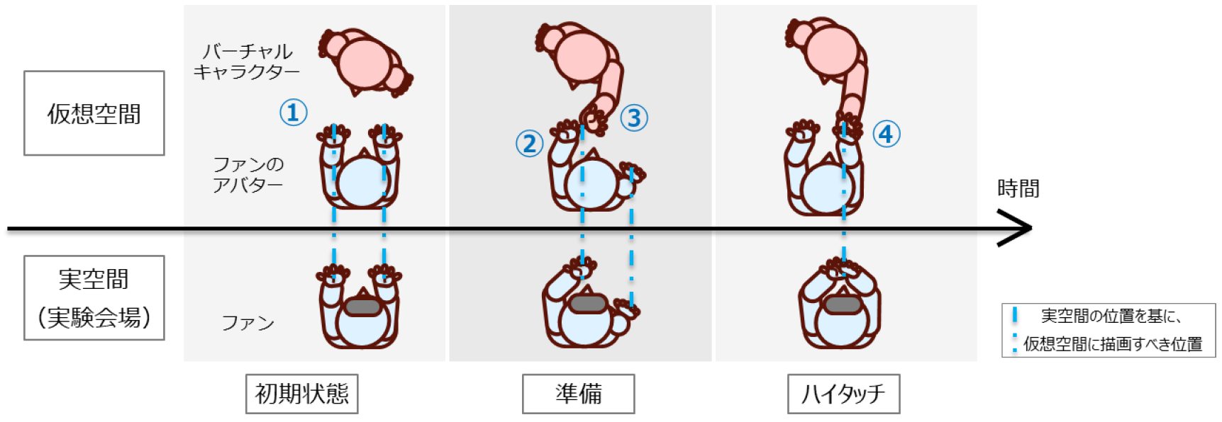 図5. バーチャルキャラクターと物理的にハイタッチした感覚が得られる仕組み