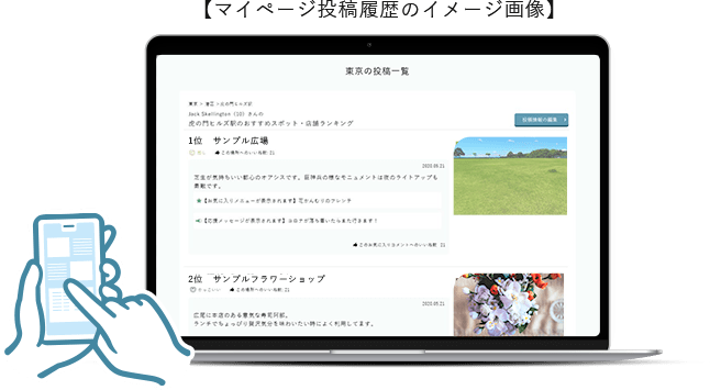 自分だけのマイランキングを作成し、自由に順位を入れ替えながら最新のお気に入りを発信できます。また、いいねしたスポットやお店はマイページで簡単に確認できます。