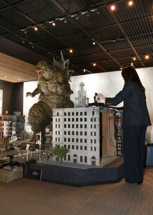 特撮怪獣映画「ゴジラ」の歴史を体感できる企画展「ゴジラ博」が18日、新潟市中央区の新潟日報メディアシップで開幕する。スクリーンで大暴れしてきた歴代ゴジラのスーツや、撮影用のミニチュアなど約50点を展示。映画の迫力ある世界観に浸れる。