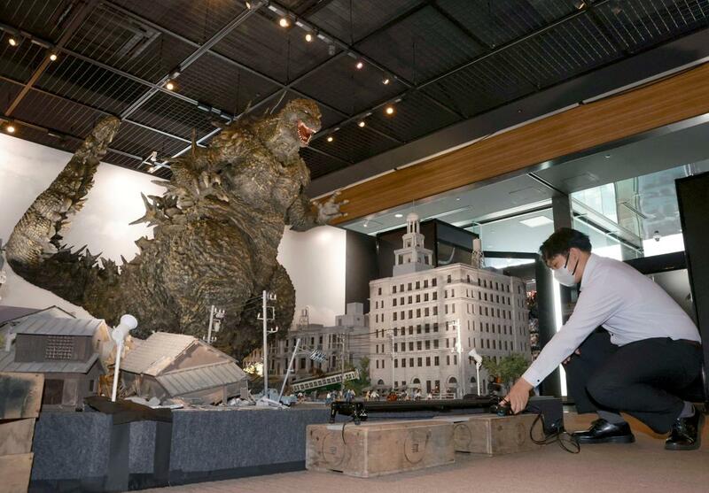 写真撮影を楽しめるジオラマなどを展示する「ゴジラ博」=17日、新潟市中央区万代3