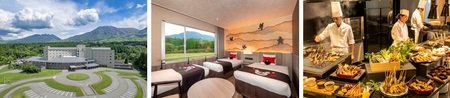 阿蘇の雄大な自然を望む絶好のロケーションに位置し、「山岳リゾート」をコンセプトに全面リニューアル。露天風呂付デラックスルームやキッズテラスルーム、体験知育型キッズパークなど、多彩な施設で大人も子どもも特別な滞在を満喫。阿蘇のご当地グルメを揃えたビュッフェや、活火山の阿蘇の山々の恩恵を受けた自家源泉の温泉を存分にご堪能ください。