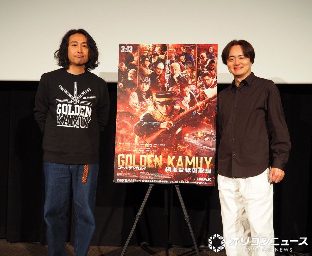 東京・TOHOシネマズ新宿で17日、公開中の映画『ゴールデンカムイ 網走監獄襲撃篇』の応援上映が行われ、上映前に片桐健滋監督と松橋真三プロデューサーが登壇した。