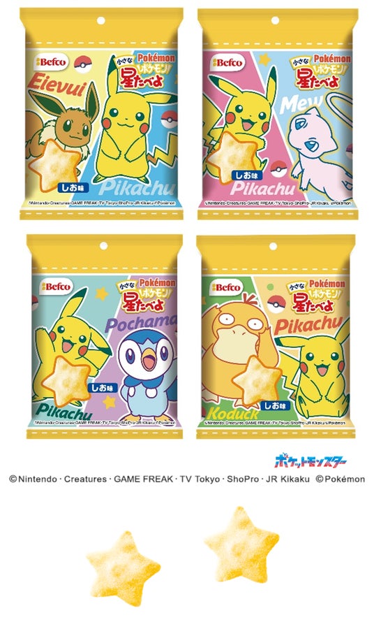 “ばかうけ”“瀬戸しお”“星たべよ”などの米菓を製造販売する、株式会社栗山米菓(本社:新潟県新潟市、代表取締役社長:栗山大河)は、このたび、「ポケモン小さな星たべよ(しお味)」「ポケモンばかうけコーンポタージュ味」のパッケージデザインをリニューアルします。