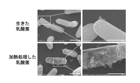(図3)生きた乳酸菌と加熱処理した乳酸菌の表面構造。