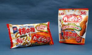米菓国内最大手の亀田製菓(新潟市江南区)は20日、同社売り上げ1位と2位のブランド「亀田の柿の種」と「ハッピーターン」の味わいを入れ替えた商品を期間限定で発売した。柿の種が発売60周年、ハッピーターンが50周年を迎えた記念として企画。大人気商品同士のコラボレーションでより幅広い層へのアピールを図る。