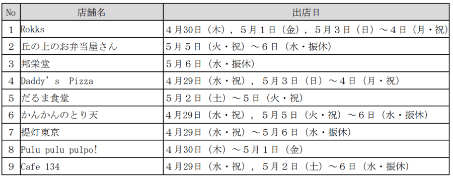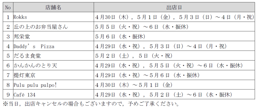 ・最新の出店スケジュールは地域情報/MaaSサイト「newcal」にて順次公開いたします。