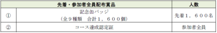 高尾山ハイキングコース、または高尾・陣馬縦走コースを達成された方は、先着順で記念缶バッジ、参加者全員にコース達成認定証をプレゼントします。