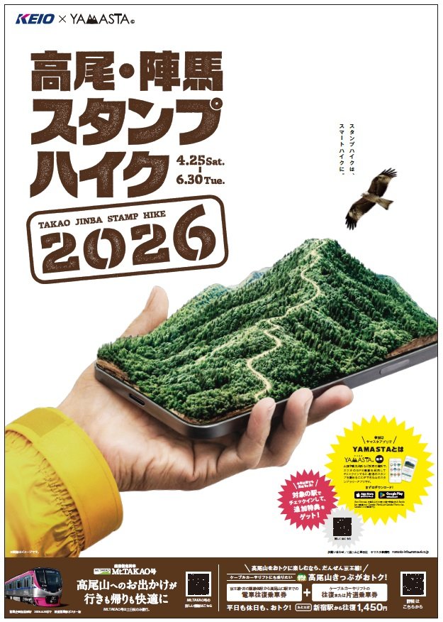 京王電鉄株式会社(本社:東京都多摩市、取締役社長:都村 智史)は、4月25日(土)から6月30日(火)まで、「高尾・陣馬スタンプハイク2026」(以下、本企画)を実施します。