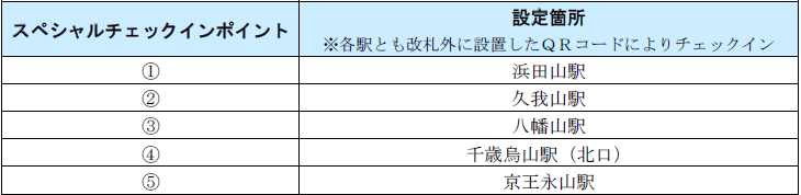 スペシャルチェックインポイントの駅いずれかにチェックインすると、先着順で記念缶バッジをプレゼントします。