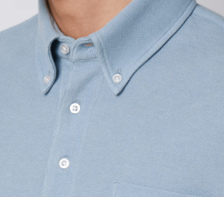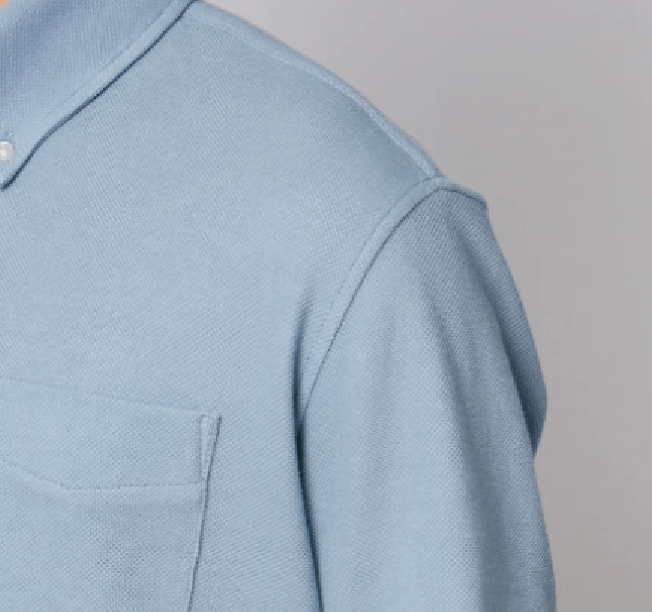 ビジネスシャツの縫製技術を取り入れた立体的な襟まわりにすることできちんとした印象に