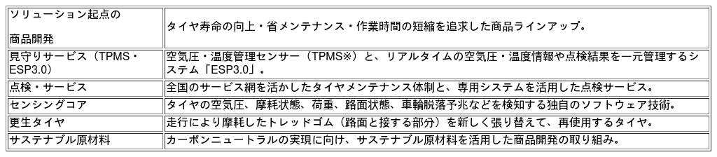 ESPは、安全運行を支える商品ラインアップ、タイヤ交換や定期点検を一括管理するフルメンテナンス、車両状態をリアルタイムで可視化するデータソリューションを組み合わせたパッケージプランです。コスト最適化、業務効率化、安全性向上、環境負荷低減に向けた取り組みをワンストップで提供することにより、運送事業者様の課題解決を総合的に支援します。