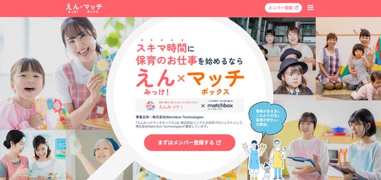 株式会社Matchbox Technologies(本社:新潟県新潟市中央区、代表取締役社長:佐藤洋彰、以下当社)は、保育施設への就職や転職を支援する園探しサイト「えんみっけ!」を運営する株式会社リンク(本社:東京都中央区、代表取締役社長:堀田欣弘、以下リンク)との共同プログラムとして、有資格者を中心とする保育領域での就業希望者と1日単位の体験求人や短時間求人を効率的にマッチングする保育専門の単発求人サイト「えんみっけマッチボックス」の運営を開始します。現在、保育施設と求職者の登録を進めており、6月から求人掲載を開始予定です。リンクは保育園への提案や求職者流入促進を担い、当社は基盤となるプラットフォームの構築と運営支援を担います。