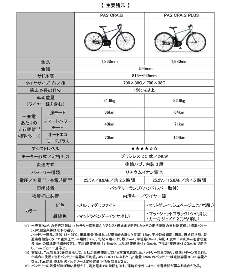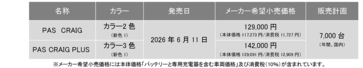 ヤマハ発動機株式会社は、洗練されたスタイリングの電動アシスト自転車「PAS CRAIG(パス クレイグ)」と「PAS CRAIG」に実用性を加えた「PAS CRAIG PLUS(パス クレイグ プラス)」の2026年モデルを6月11日に発売します。