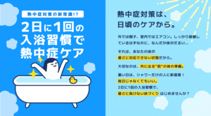 アース製薬株式会社(本社:東京都千代田区、社長:川端克宜、以下「アース製薬」)は、忙しい現代人の「お風呂の質(Quality of Furo)」を向上させるためのプロジェクト「QOF向上プロジェクト」第二弾として、「入浴と熱中症」に関する研究結果をより多くの生活者にお伝えし、社会全体の熱中症リスク軽減に貢献することを目的に、新たに「熱ケア」サイトをオープンしました。