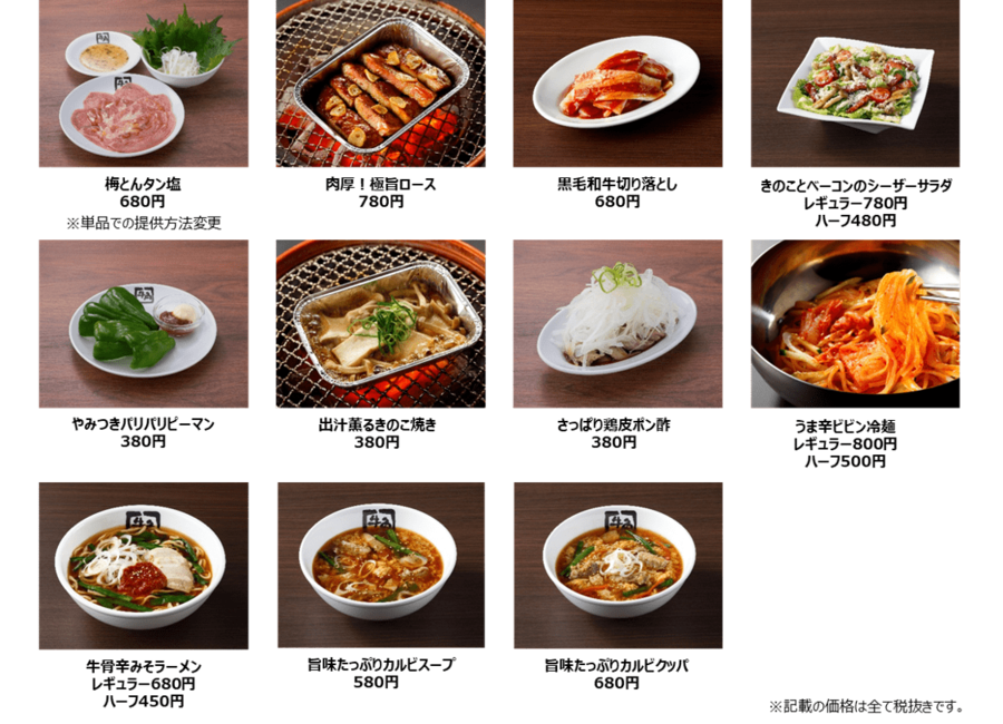 そのほかにも、「梅とんタン塩」「やみつき塩キャベツ」など、お客様から復活を望む声が多かったメニューを再導入。さらに、「ビビン冷麺」や「牛骨辛みそラーメン」、サラダなどの新商品も加え、焼肉とあわせて楽しめるサイドメニューの充実を図りました。焼肉だけでなく、前菜から〆まで含めた“トータルでの満足度向上”を目指しています。
