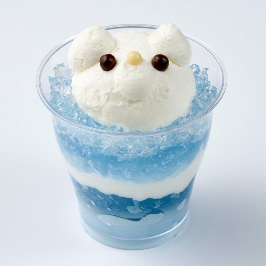海から顔をひょっこりのぞかせているしろくまをイメージしたスイーツです。ほんのり甘い2種類の食感のソーダ風味ゼリーとヨーグルトクリームを組み合わせ、食感のアクセントにナタデココシロップ漬けを入れました。見た目も爽やかで、お子様にも安心してお召し上がりいただけるよう、やさしい味わいに仕上げています。