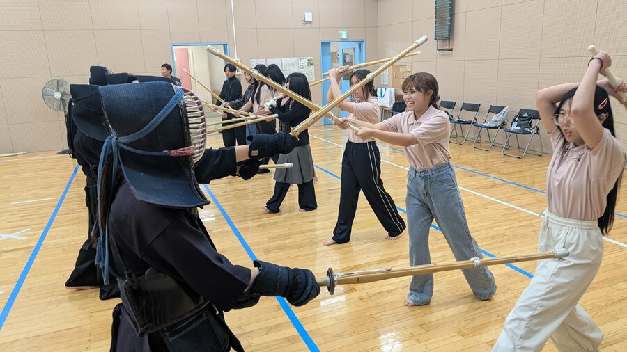 交流では、タイの正月行事「ソンクラーン祭り」の紹介や、伝統的な飾りである「ドンサイモー」作りを通じて、文化相互理解を深めました。また、本校剣道部員の指導による剣道体験も行い、日本文化への理解を深める機会となりました。