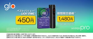 本キャンペーンは、全国のコンビニエンスストア[1]、glo™公式オンラインストアおよび各公式オンラインストア[2]、ならびにglo™ ストア 銀座にて展開し、紙巻たばこから加熱式たばこへの切り替えの機会として、「glo™ Hyper Pro」をよりお求めやすい価格でお試しいただけます。