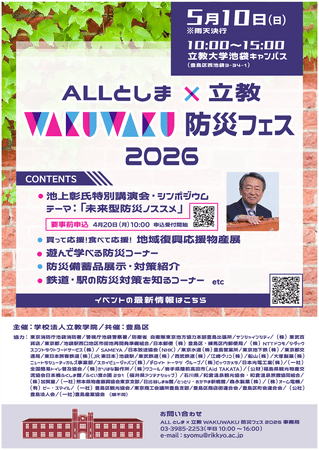 学校法人立教学院(東京都豊島区、理事長:福田裕昭)は、2026年5月10日(日)、豊島区との共催により、防災・減災への意識を高める体験型イベント「ALLとしま×立教 WAKUWAKU防災フェス2026」を立教大学池袋キャンパスにて開催します。