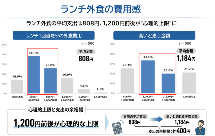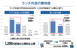 ランチ外食の平均支出は808円、1,200円前後が“心理的上限”に