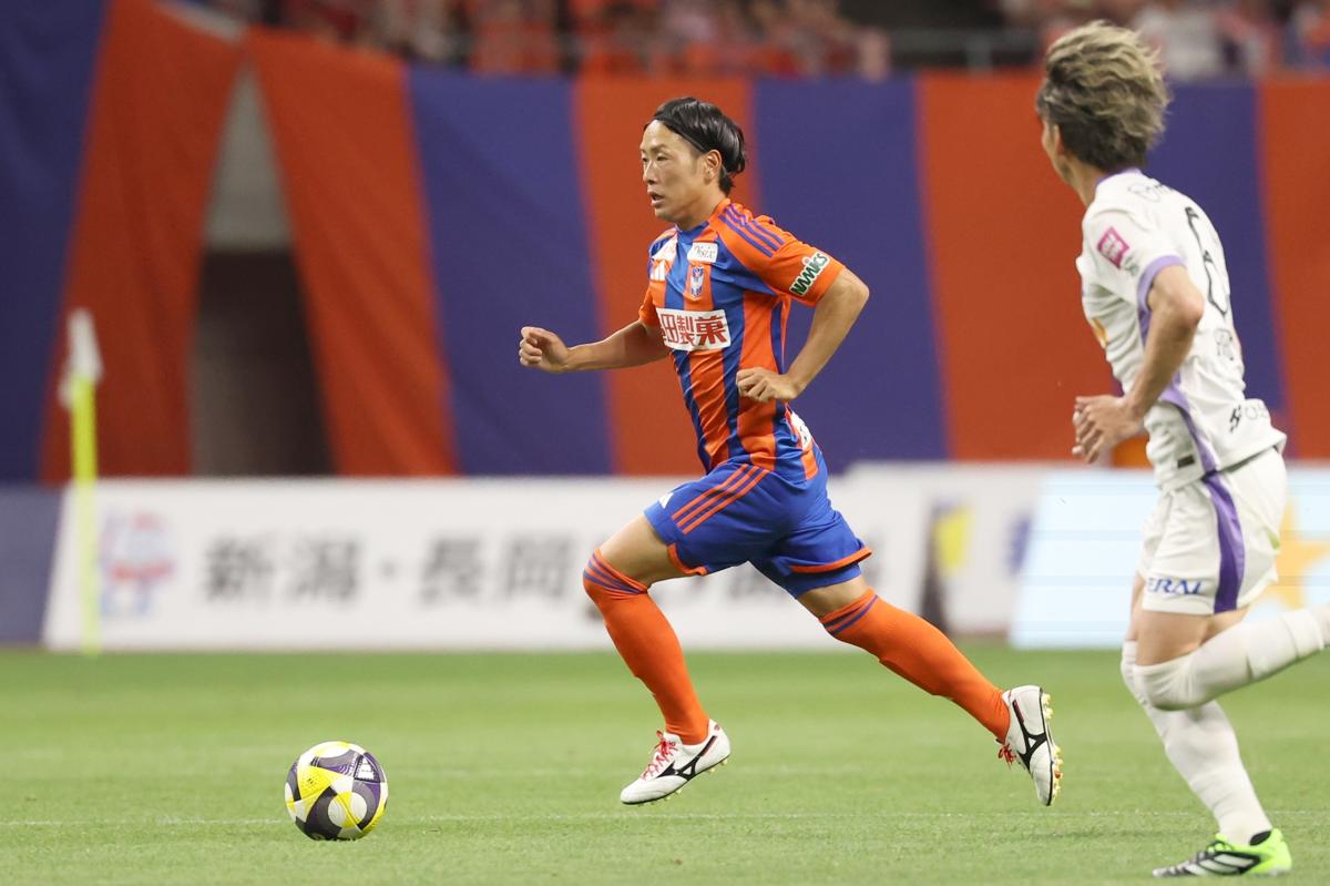 サンフレッチェ広島戦でプレーする星雄次=2025年7月、ビッグスワン