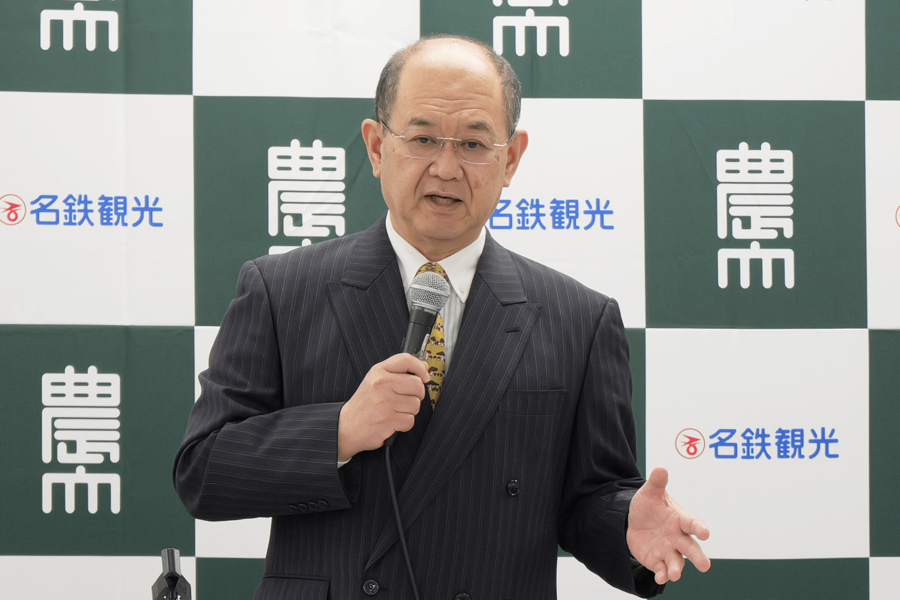 名鉄観光サービス 代表取締役社長の岩切 道郎は「名鉄観光サービスのメイン事業のひとつに教育旅行がある。従来は名所旧跡を見学する等していたが、旅行費用高騰、嗜好の多様化、オーバーツーリズムや環境問題のような諸問題もあり昨今、その在り方に大きく変化が求められている。そのような中で探究学習を組み込んでいく事がより重要になると認識している。教育機会をしっかりと生み出し、社会課題の解決に役立つような生徒・学生を生み出せるよう深化していきたい」と述べると、東京農業大学 学長の江口 文陽は「人材育成という観点では様々な問題、壁にぶつかった時にその壁を乗り越えられる探究心、冒険心を持っている人材を育成していく事が今回の包括連携協定の目的だと考えている。それぞれの地域の特性、地域の観光資源、地域の人材といった無限の可能性を持つ資源を上手く社会に活用していくために、名鉄観光サービスと東京農業大学が手を組む事で大きな化学変化を起こせるのではないか。今回はそのスタート」と、期待の想いを述べました。