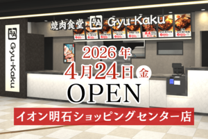 コロワイドグループの株式会社レインズインターナショナルが運営するフードコート専門店「牛角焼肉食堂」は、2026年4月24日(金)に全国92店舗目、兵庫県では5店舗目となる「イオン明石ショッピングセンター店」をオープンいたします。